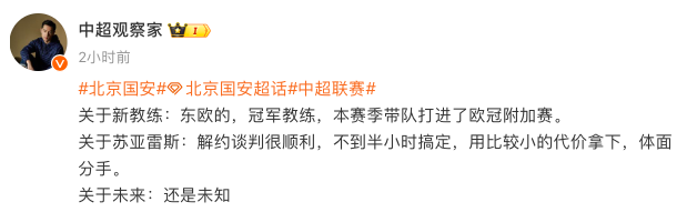 国安与苏亚雷斯解约 东欧冠军教练或将接任