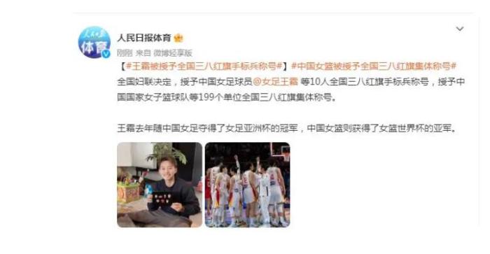 王霜亮相了什么新职务呢?据悉,在三八女神节即将来临之际,全国妇联也是公布了2022年度全国三八红旗手标兵的名单,来自于湖北省体育局的女足球员王霜凭借着在2022年女足亚洲杯中出色的表现,王霜也是亮相了全国三八红旗手标兵的新职务,值得一提的是,此次被授予全国三八红旗手标兵称号的包含王霜全国只有10人,这个奖项也是对于王霜付出最大的肯定。