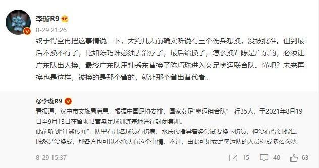 李璇谈女足征召:被换的是哪个省,该省就出替代者