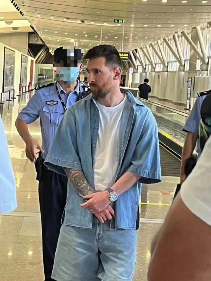 一下飞机后,梅西呼吸着第一口来自东方的口气,竟然咧嘴微笑起来。随后,他坐上摆渡车时,丝毫没有球王架子,自己提着行李箱上车。