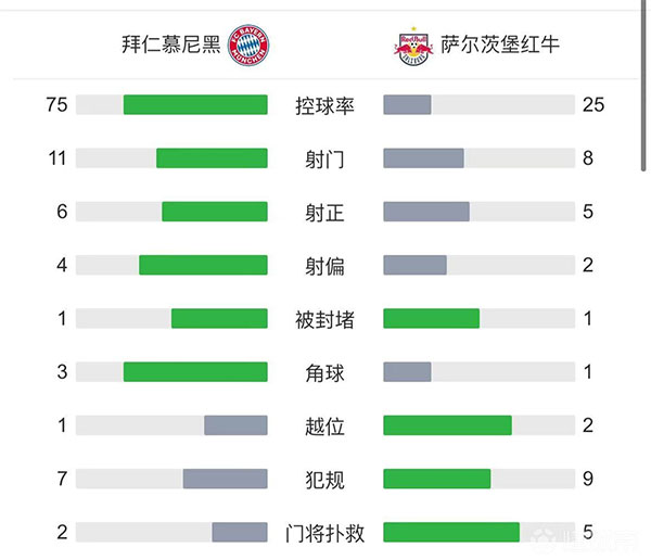 全场比赛结束,最终拜仁4-4战平萨尔茨堡红牛。