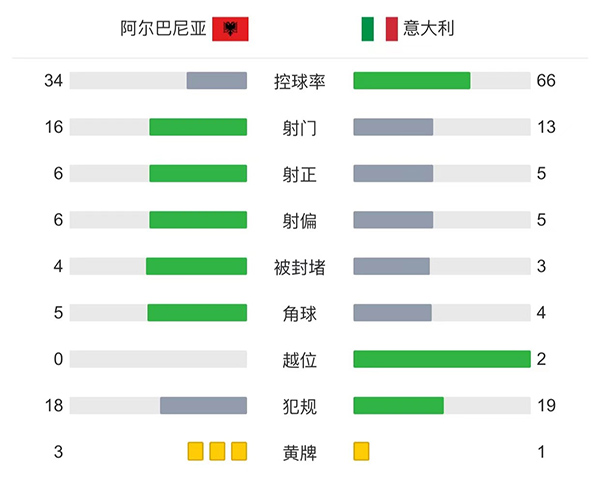 全场比赛结束,最终意大利3-1阿尔巴尼亚。