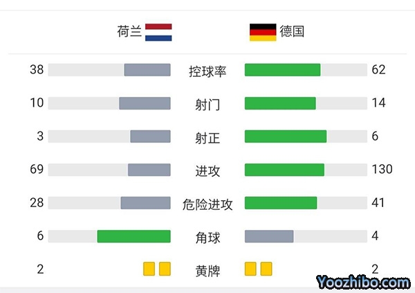 第45分钟,维尔纳直塞球到禁区,穆西亚拉插上底线附近倒三角传中,前点漏过,穆勒跟上抽射破门,荷兰0-1德国!