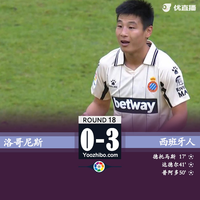 全场比赛结束,西班牙人3-0洛格罗涅斯。