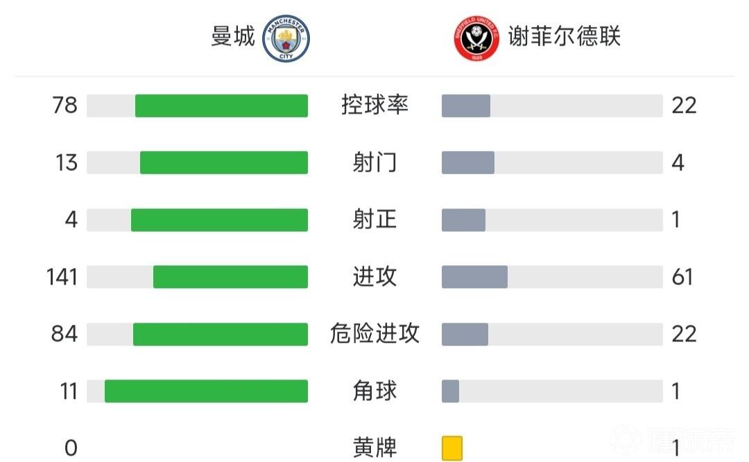 曼城3-0谢菲联 马赫雷斯戴帽+一条龙建功B席造点