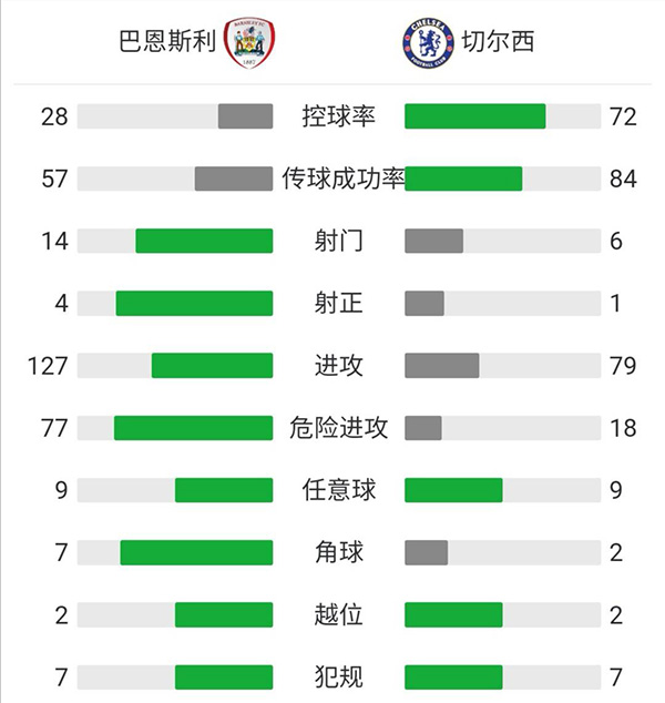 全场比赛结束,切尔西1-0淘汰巴恩斯利晋级八强。